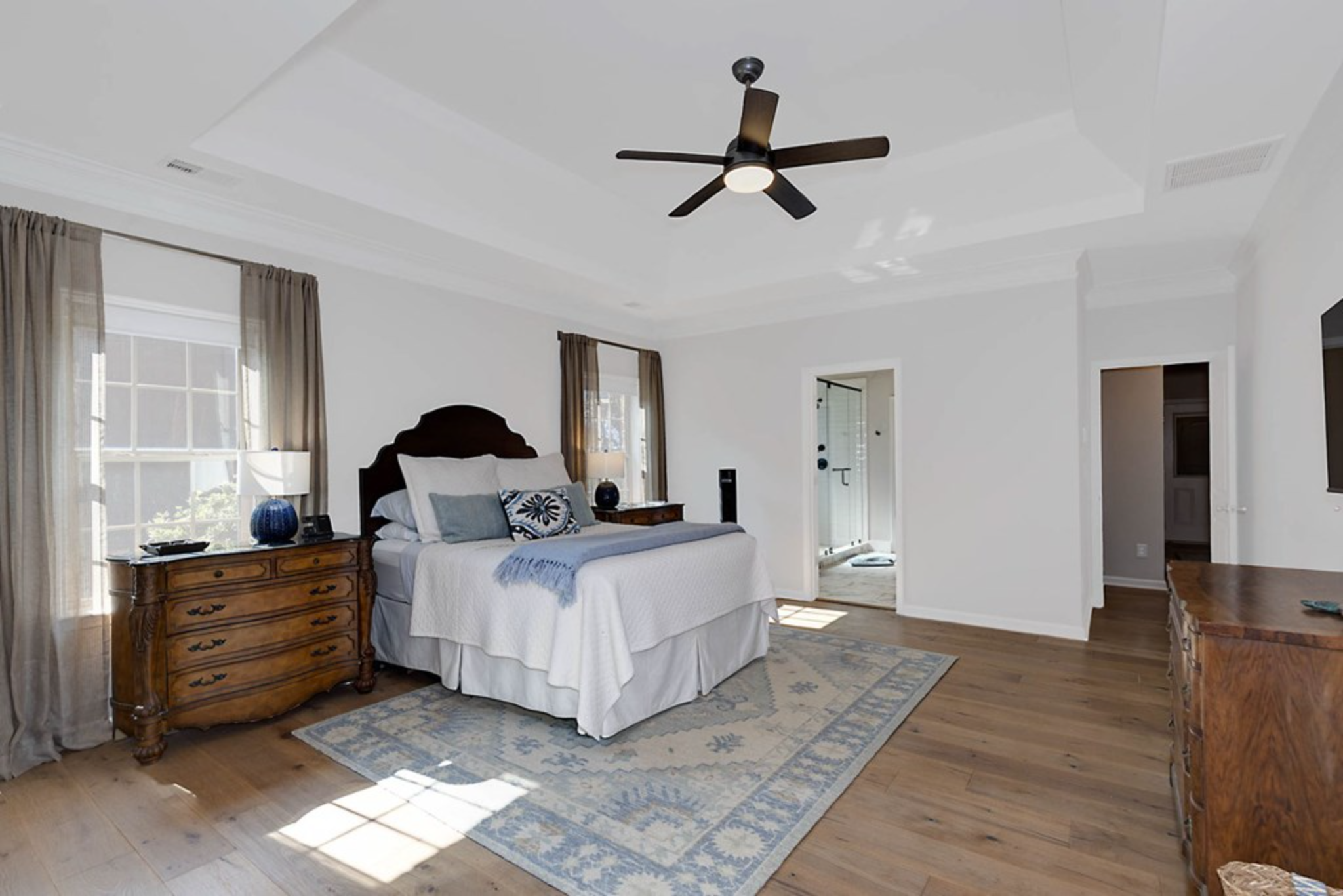 This stunning home is in immaculate condition, having been completely renovated within the last five years. It features an open floor plan, beautiful flooring, and a kitchen with custom cabinetry. The expansive master suite offers ample space for a dedicated seating area or office. The property includes a desirable split-bedroom layout, a covered porch, and a private backyard. It is a must-see!
